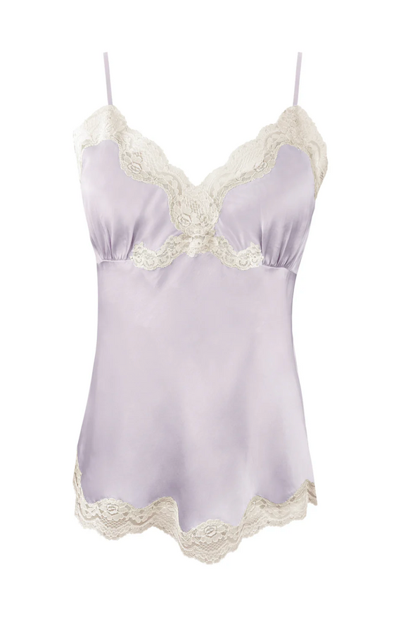 Gold Hawk Silk Camisole with Lace in Purple Haze
