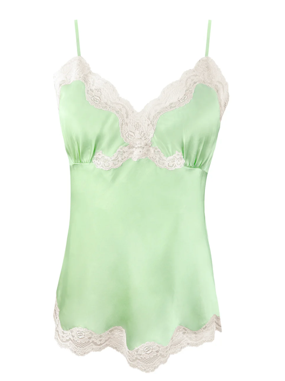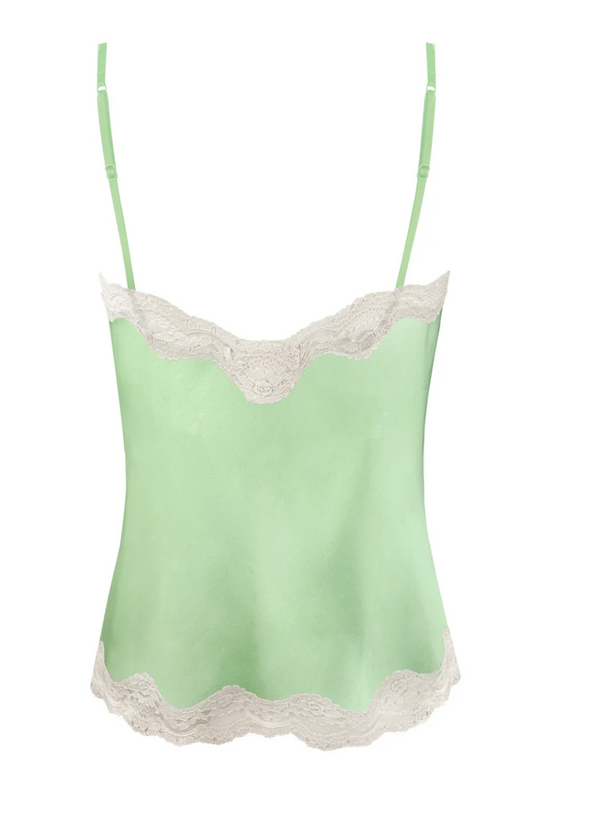 Gold Hawk Silk Camisole with Lace in Light Green