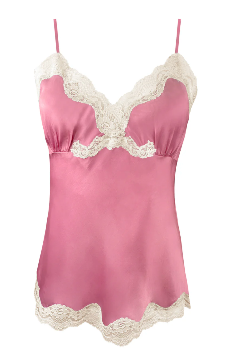 Gold Hawk Silk Camisole with Lace in Pink Lemonade