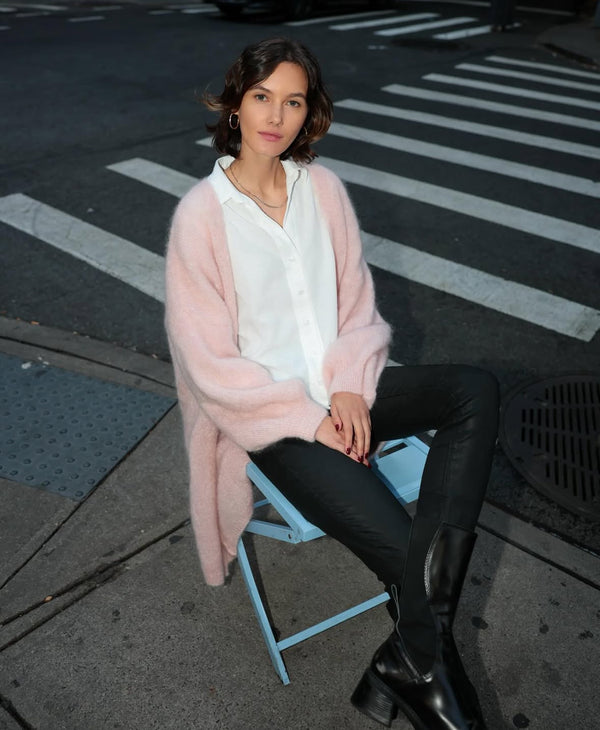 American Dreams Cornelia Long Sleeve Cardigan in Light Pink