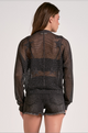 Star Embellished Knit Cardigan - Open Weave Bomber Jacket Sweater