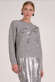 Embrace festive charm with this soft Bow Crew Neck Sweater in shimmering silver sequins. Crafted from a cozy blend of polyester, acrylic, and elastane, it offers gentle stretch and warmth—perfect for holiday gatherings. The delicate bow pattern adds a touch of elegance, making it an effortless statement piece for your seasonal wardrobe.