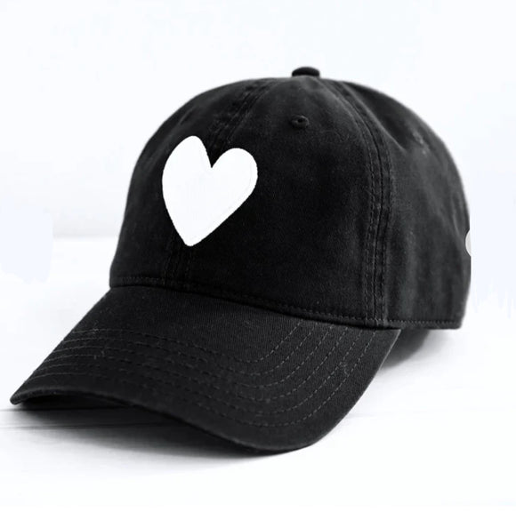 Kerri Rosenthal Black Baseball Cap with White Heart Patch
