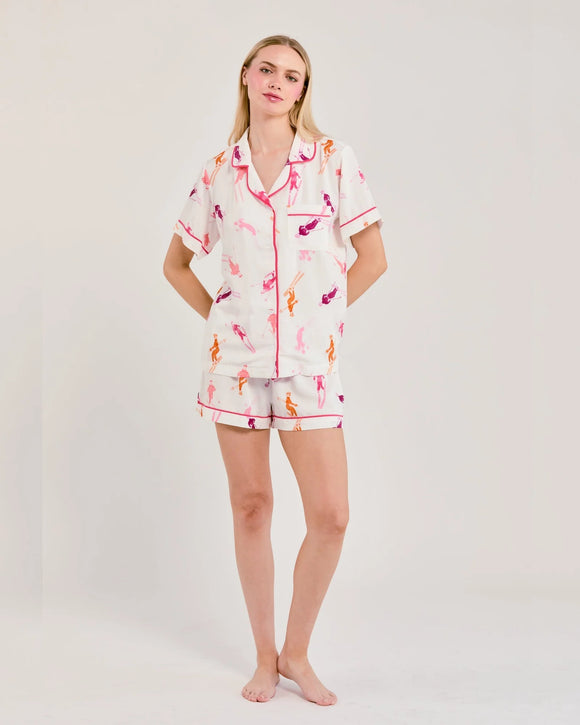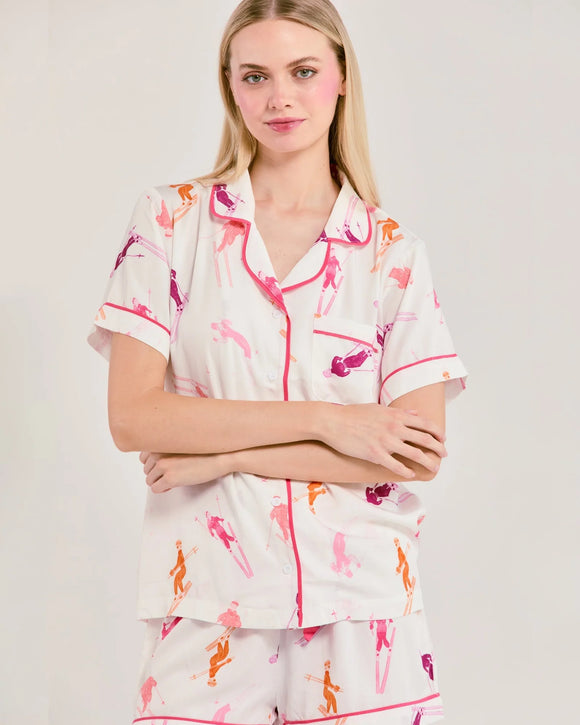 Katie Kime Bluebird Day Short Pajama Set - Ski Print Modal Cotton