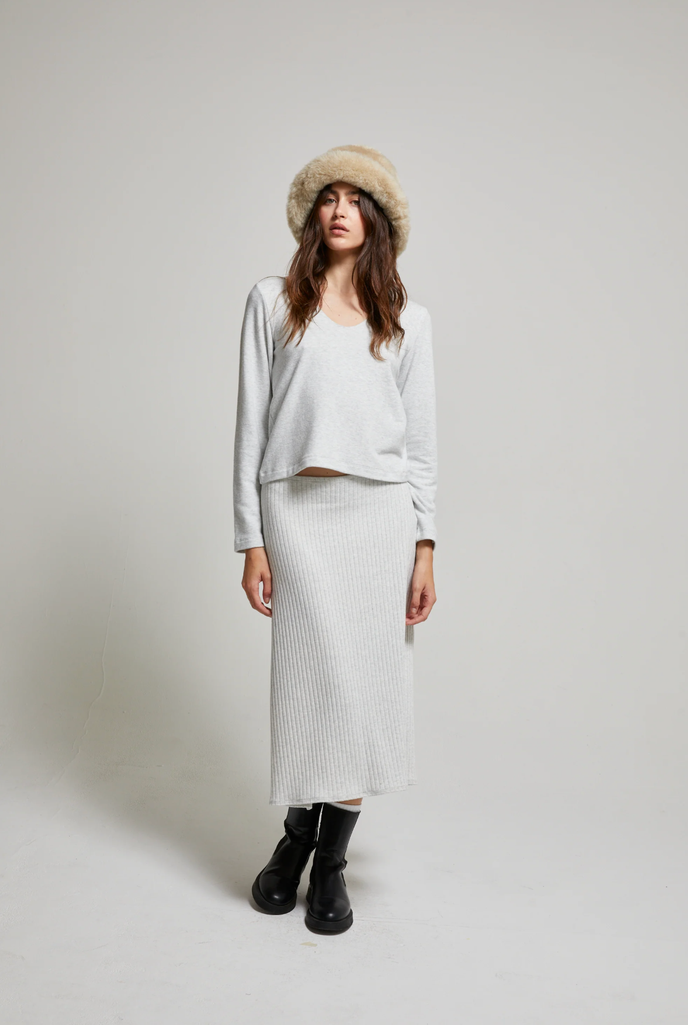 Nora Deep U-Neck Long Sleeve Top in Ash