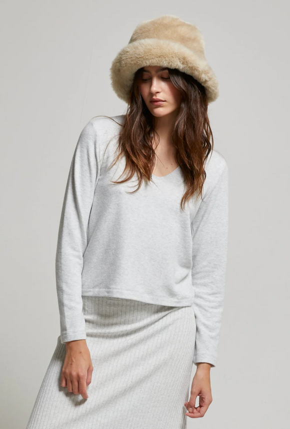 Nora Deep U-Neck Long Sleeve Top in Ash