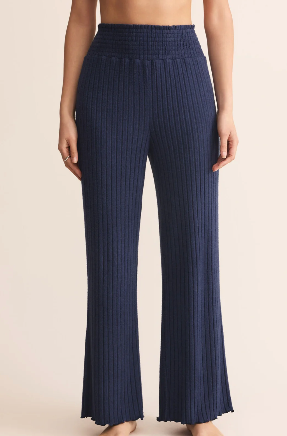 Experience everyday comfort and style with the Dawn Smocked Rib Pant in Blue Sapphire. Crafted from soft ribbed fabric, these pants offer a flattering smocked waistband that ensures a perfect fit all day long. The rich Blue Sapphire color adds a vibrant touch to your casual wardrobe, making these pants your new favorite for effortless, chic looks. Whether relaxing at home or stepping out, enjoy the blend of comfort and subtle sophistication with every wear.