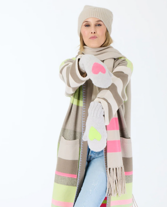 Kerri Rosenthal Shawl Collar Cashmere Multicolor Stripes Duster
