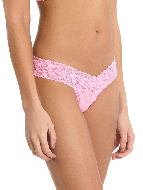 Hanky Panky Low Rise Signature Lace Thong In Strawberry Lemonade