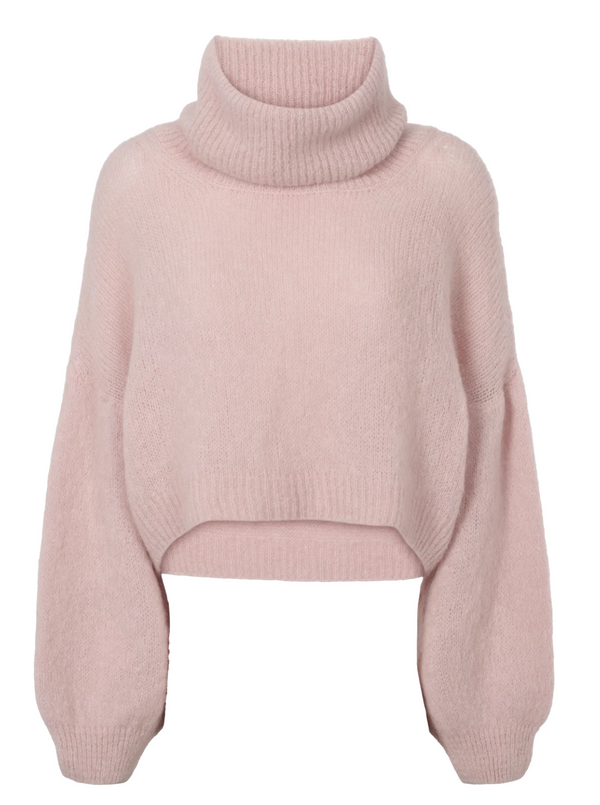 American Dreams Andrea Rollneck Cropped Alpaca Pullover in Light Pink