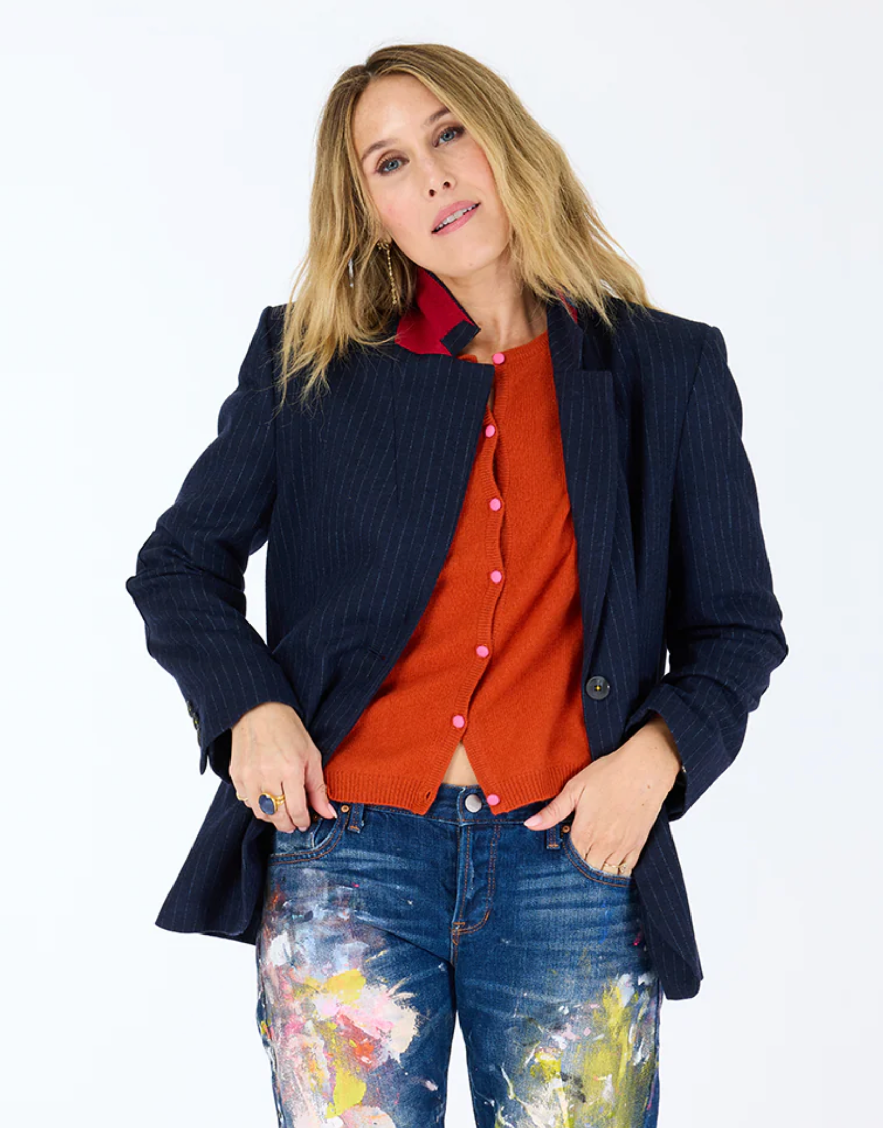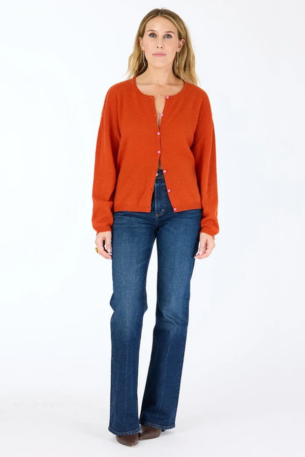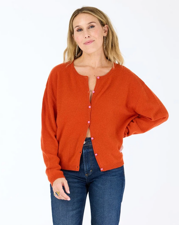 Kerri Rosenthal Bassett Cardigan - Rust with Pink Covered Buttons