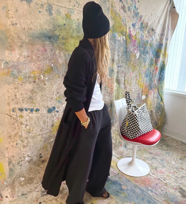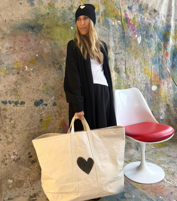 Kerri Rosenthal's Love Beanie combines cozy luxury with everyday style. Crafted from a soft cotton-cashmere blend, it feels gentle against your skin while keeping you comfortably warm on cooler days. Featuring a slouchy fit with a foldable cuff for versatility, this black beanie is accented by a charming white imperfect heart patch that adds unique character. Easy to care for with professional dry cleaning or gentle washing, it’s the perfect accessory to elevate your casual looks with subtle, heartfelt detail. One size fits all for effortless wear.