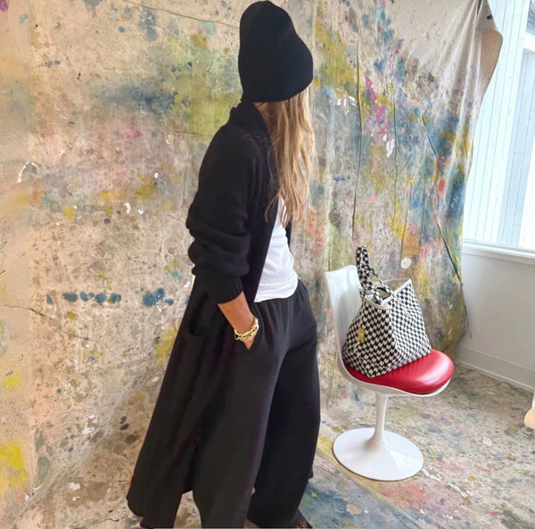 The Mercer Loved Duster combines cozy comfort with effortless style. Crafted from a soft blend of 95% cotton and 5% cashmere, this 39.5" open-front coat drapes beautifully for a relaxed fit. Featuring unique intarsia artwork on the back, it adds a chic touch to any casual outfit. Pair it with blue jeans or stylish sweats for a laid-back yet fashionable look. Easy to care for with delicate washing or professional dry cleaning, this duster is your new go-to layering piece. Imported for quality and designed to flatter.