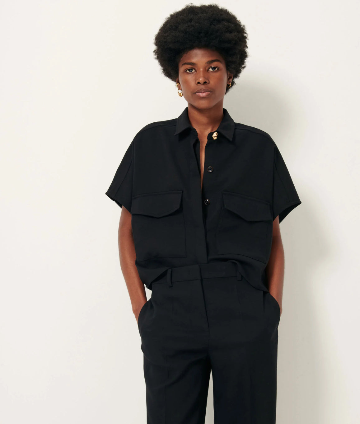 The Bianca Blouse in Black offers a relaxed fit crafted from broken twill for effortless style and comfort. Made with LENZING™ ECOVERO™ viscose sourced from sustainably managed wood and REPREVE® certified recycled polyester, this blouse minimizes environmental impact without compromising quality. Choose the Bianca Blouse for an eco-conscious wardrobe staple that combines softness, durability, and responsible production.