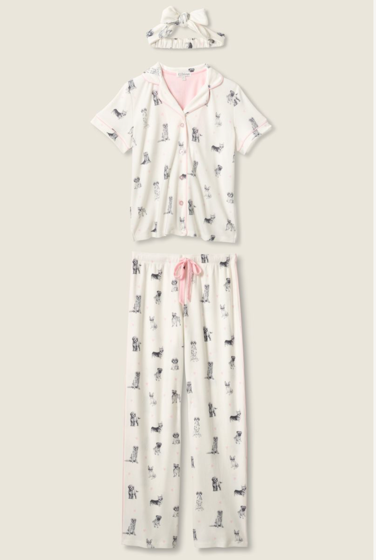 Snuggle up in this adorable pajama set featuring playful pups sporting sunglasses—the perfect cozy companion for lazy mornings and restful nights. Crafted from luxuriously soft fabric, this set keeps you comfortable from bedtime to breakfast. The included matching headband adds a charming finishing touch, while machine-washable construction means easy care. Ideal for gifting or treating yourself to everyday comfort that brings a smile.