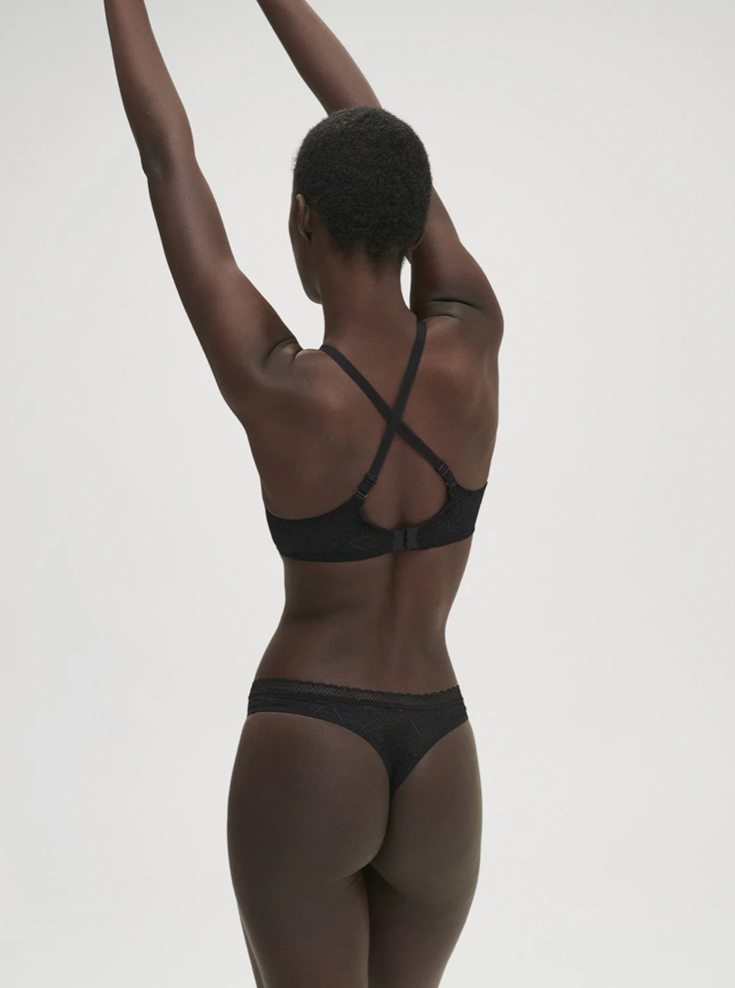Everyday elegance meets French sophistication in this effortless tanga. Crafted from soft stretch lace that hugs your curves while staying invisible under any outfit, it delivers the perfect balance of comfort and allure. The mid-rise silhouette features minimal back coverage, a crease-free picot trim waistband, and a cotton gusset for breathable wear. Pair it with the matching set for a complete look that feels as good as it looks.