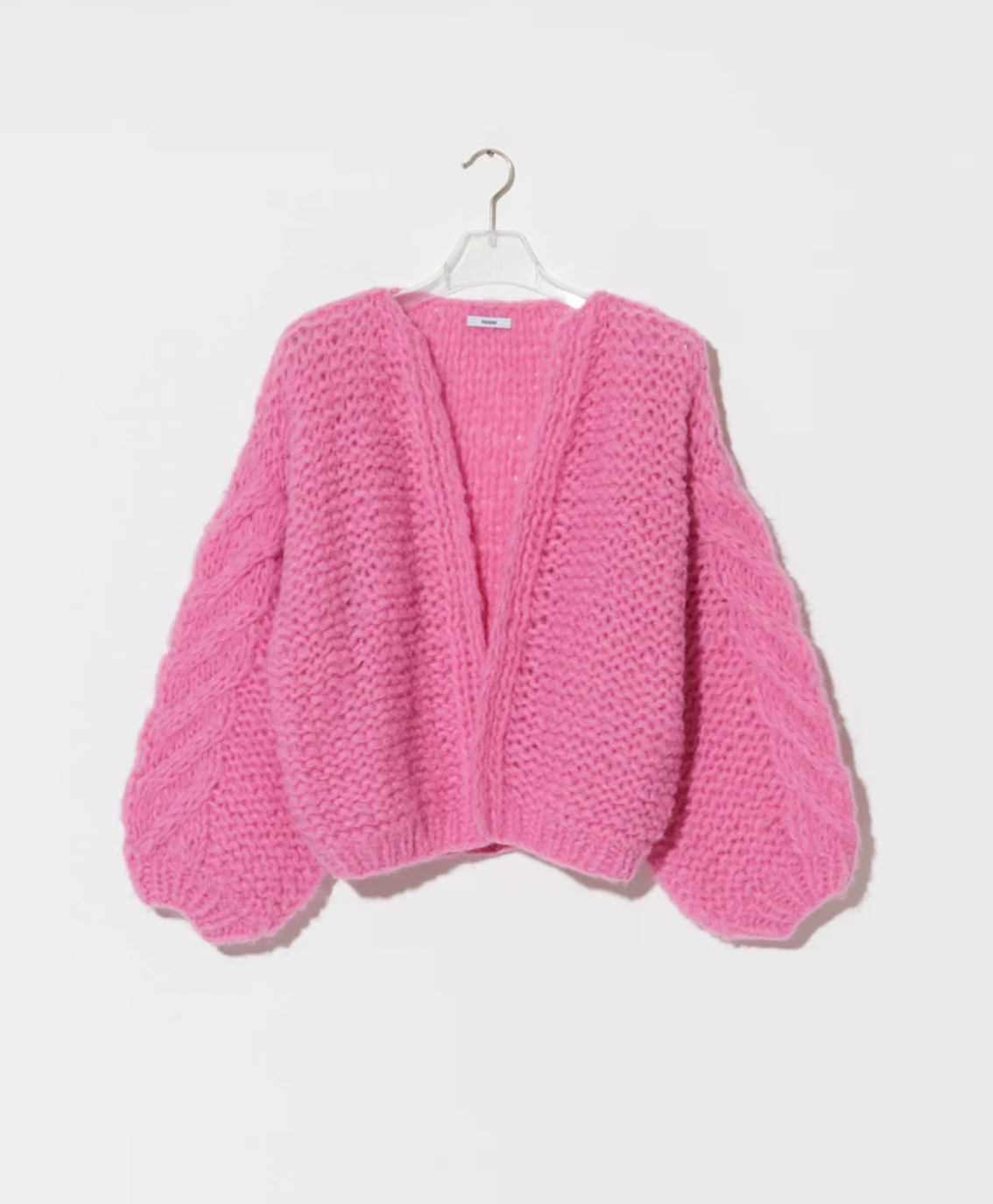 Fleecy Alpaca Cable Bomber Cardigan Bonbon Pink