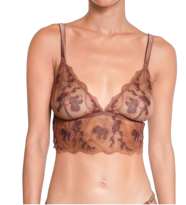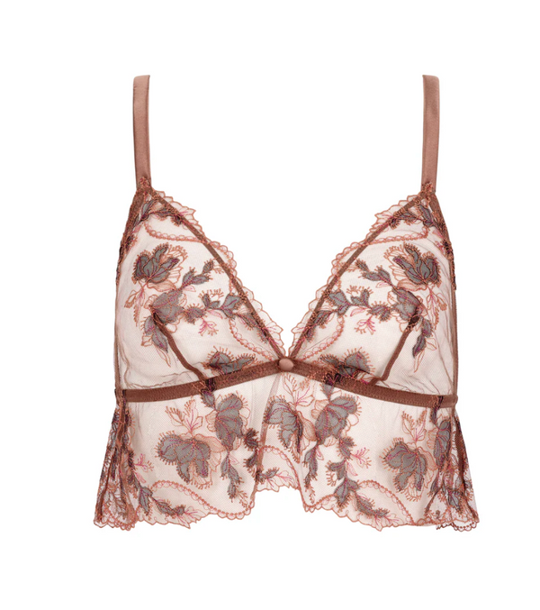 Huit Poème Wireless Bralette - Mocha Brown Floral Lace
