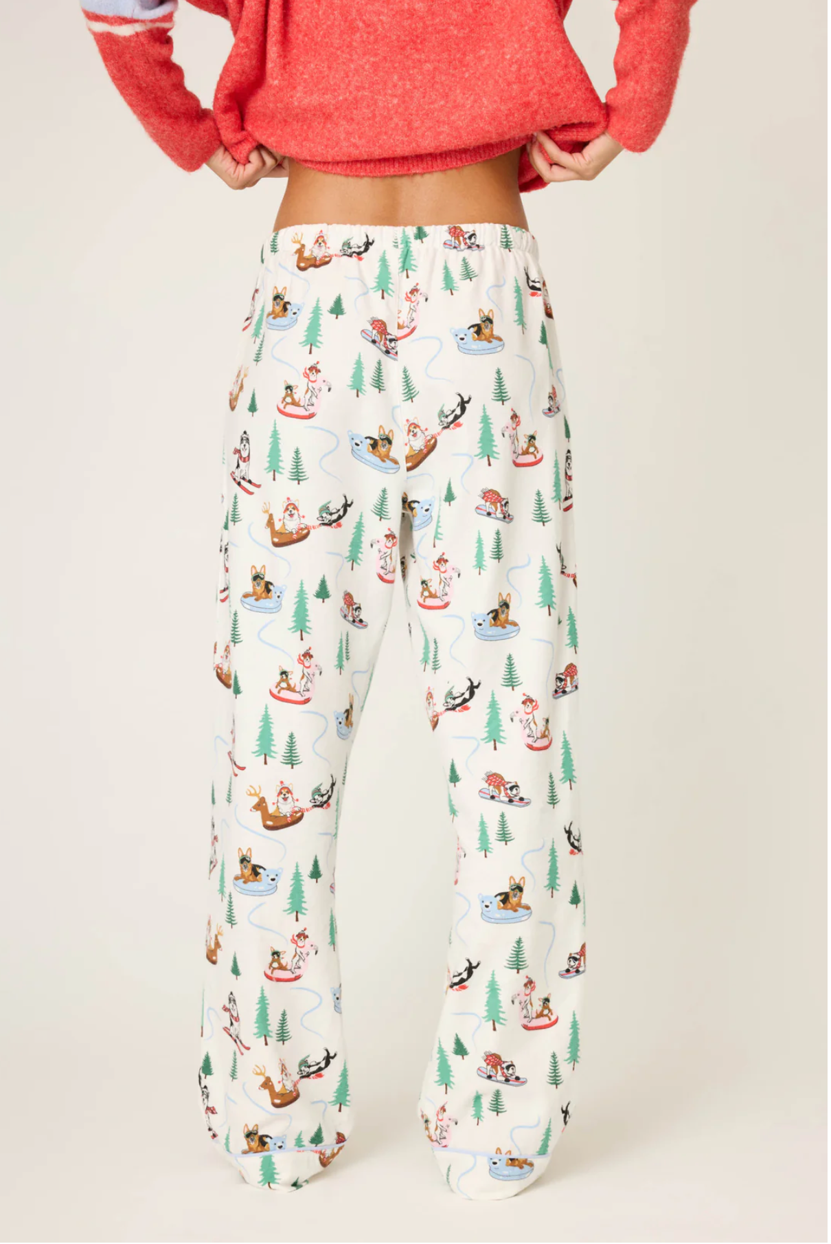 These women's white flannel pajama pants combine cozy comfort with charming style thanks to their playful dog print. Made from soft 100% cotton twill flannel, they offer warmth and breathability for restful nights. The adjustable drawstring waist ensures a perfect fit, while the piped hems add a subtle touch of elegance. Easy to care for, they can be machine washed and tumble dried for convenience. Embrace cozy relaxation without sacrificing style in these delightful pajama pants.