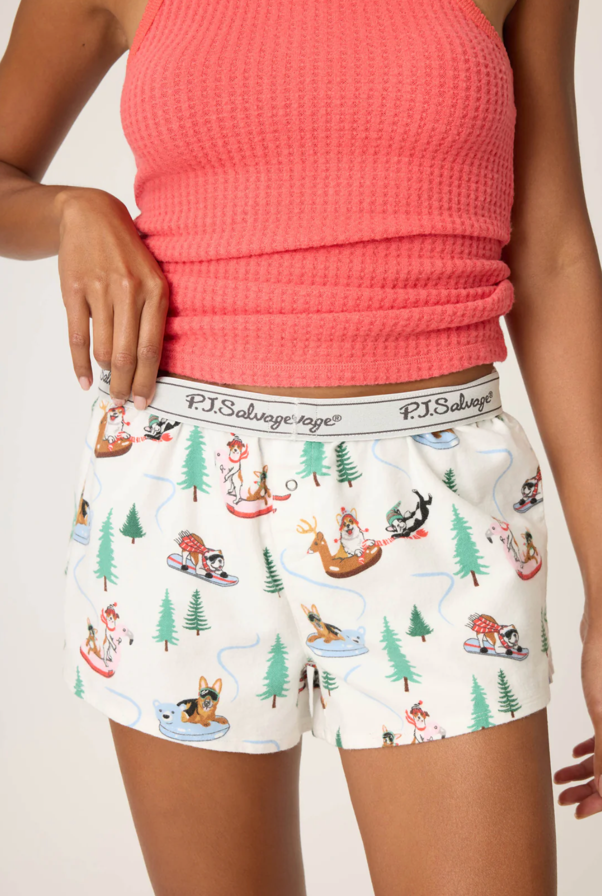 Experience cozy comfort and playful style with these women's white flannel boxer shorts featuring a charming dog print. Crafted from 100% cotton twill flannel, they promise softness and warmth, while the button fly adds classic detail. The logo waistband ensures a snug fit with a touch of brand flair. Easy to care for with machine wash cold and tumble dry low, these boxers combine comfort, durability, and fun in one perfect loungewear essential. Find your ideal fit and enjoy relaxed confidence every day.