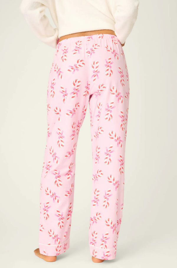 Sweeter Than Sugar Candy Cane Print Flannel Pants in Baby Pink
